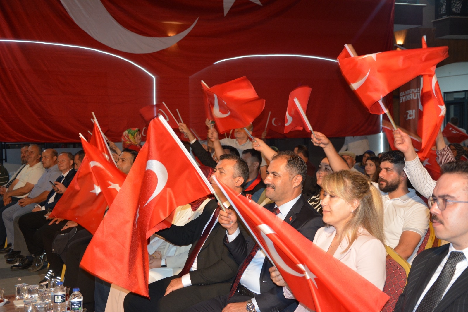 Yürüyüş öncesi Demirci Belediyesi tarafından vatandaşlara şanlı bayrağımız hediye edildi.