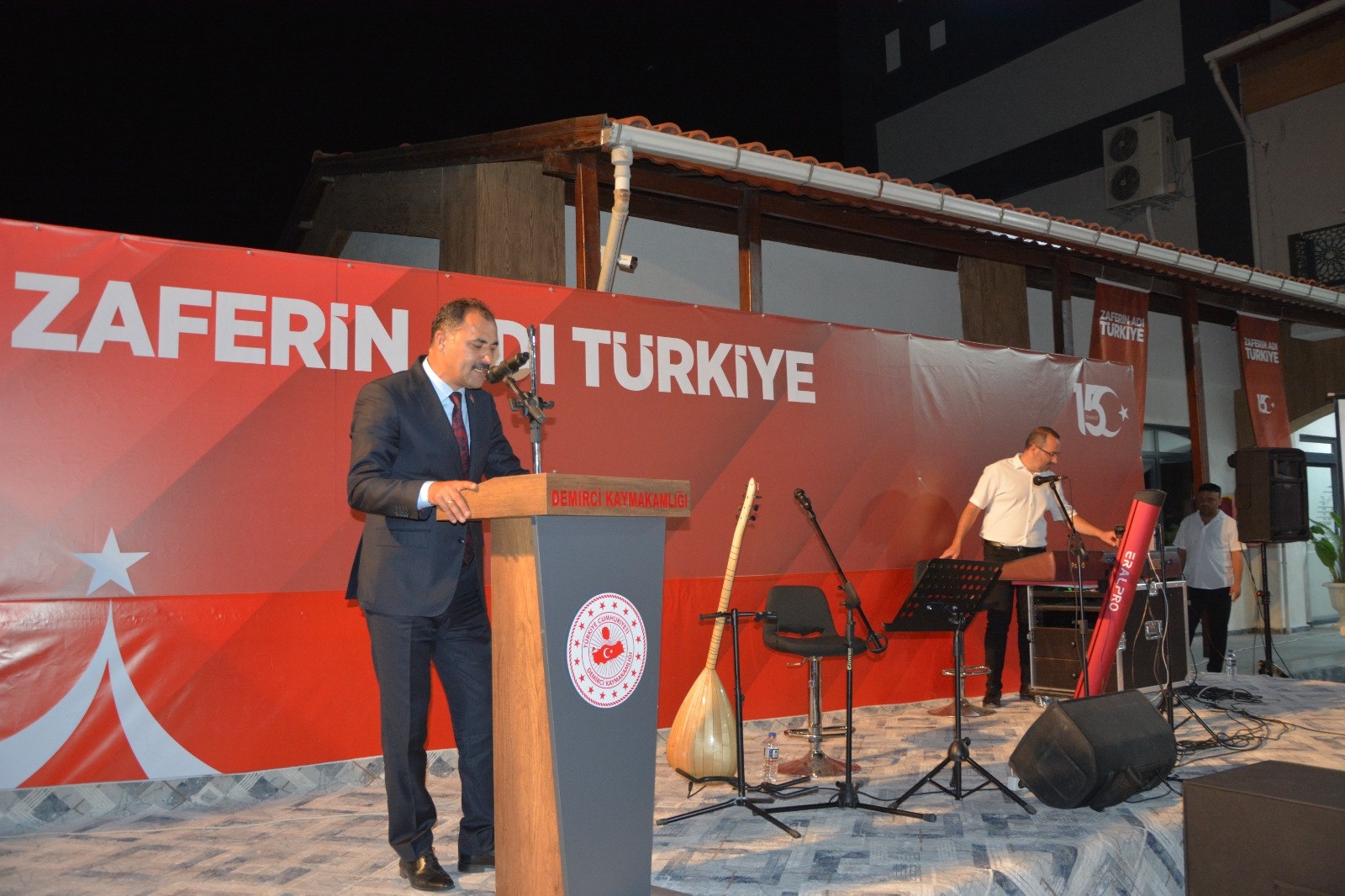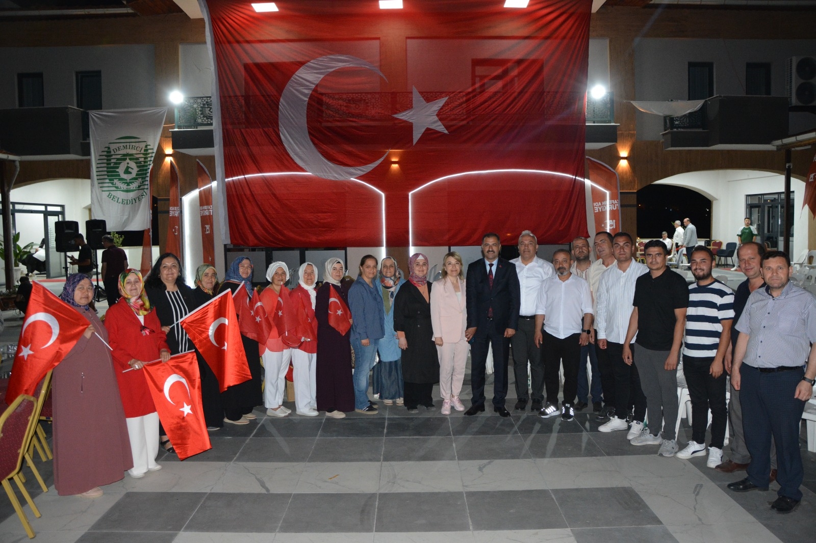 15 Temmuz Demokrasi ve Milli Birlik Günü Demokrasi Nöbetine Demirci Kaymakamımız Fatih Bayram, Belediye Başkanımız Erkan Kara, eşi Nermin Kara, Cumhuriyet Başsavcısı Emre Aytaç, İlçe Jandarma Komutanı Üsteğmen Uğurcan Şahin, İlçe Emniyet Müdürü Barış Kayar, AK Parti İlçe Başkanı Nurullah Akgün, MHP İlçe Başkanı Ümit Kanyılmaz, Belediye Başkan Yardımcımız İsmail Hakkı Gül, İlçe Milli Eğitim Müdürü Bilal Çetinkaya, Gaziler ve Vatandaşlar katıldı.