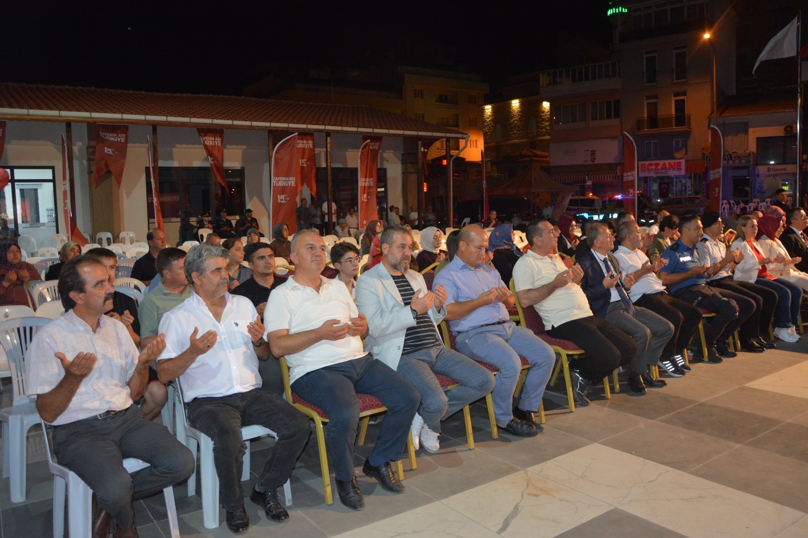 Kaymakamımız Fatih Bayram ve Belediye Başkanımız Erkan Kara, 15 Temmuz Demokrasi Nöbetinde günün anlam ve önemini belirten konuşma gerçekleştirdiler.