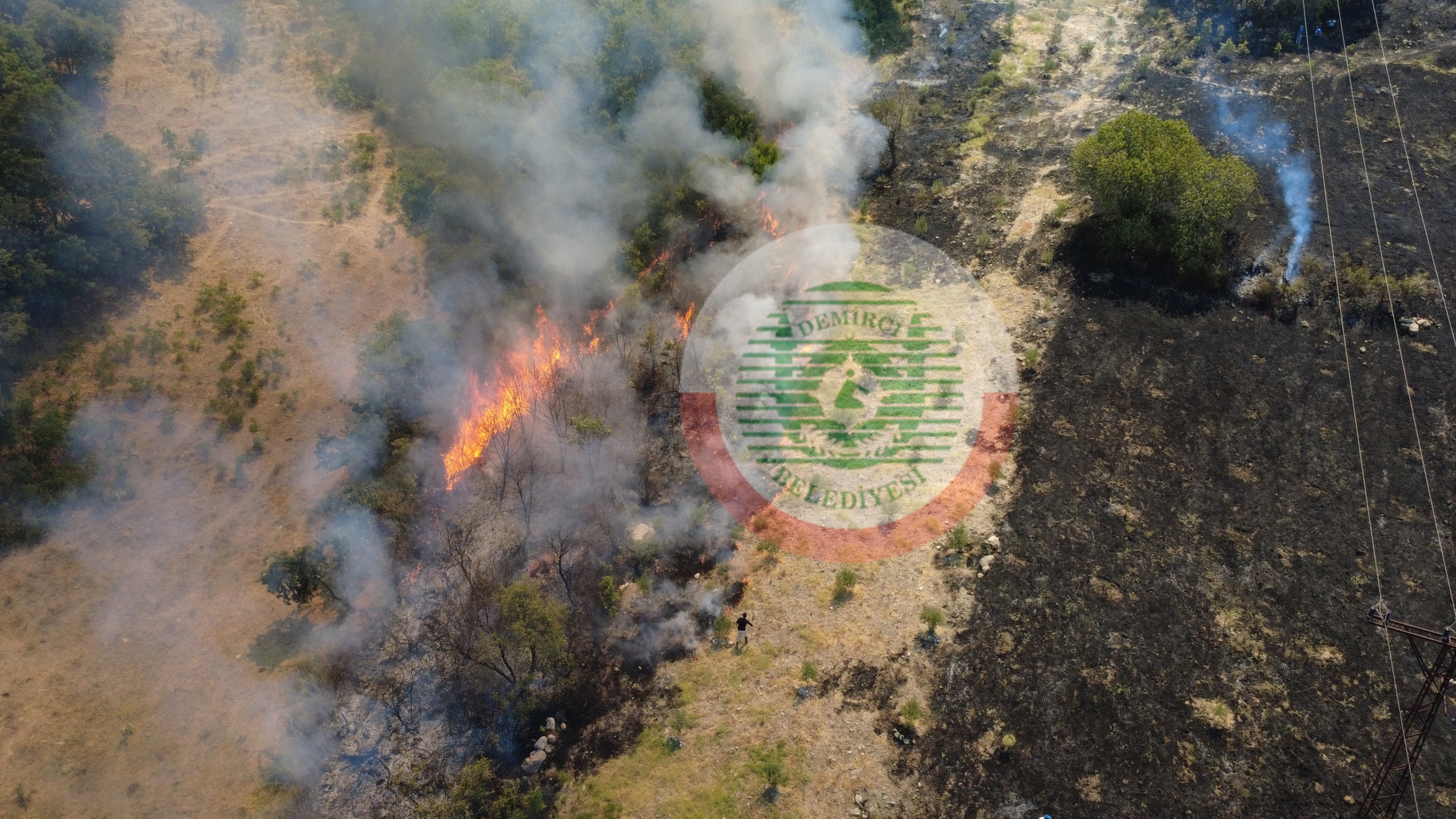 23 Temmuz 2025 / Çarşamba günü Demirci’ye bağlı Öksüzlü Mahallesinde trafonun patlaması sonucu tarım arazisinde başlayan yangın rüzgârında etkisi ile kısa sürede büyüdü.