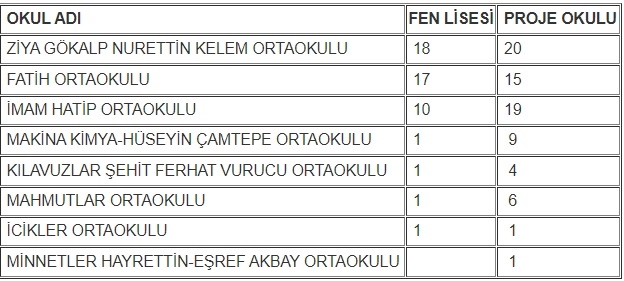 2025 / LGS yerleştirme sonuçları okullar bazında ise şöyle gerçekleşti ;