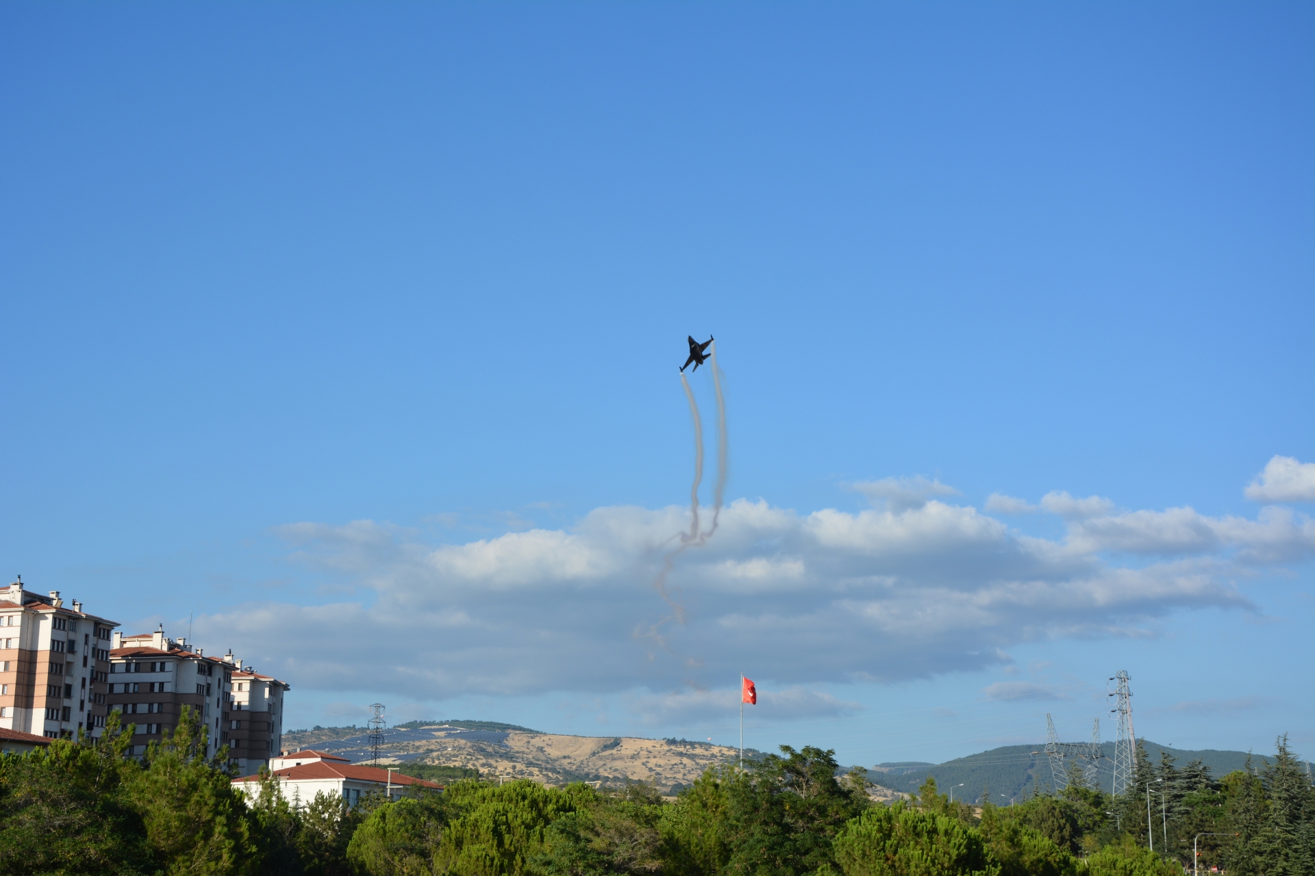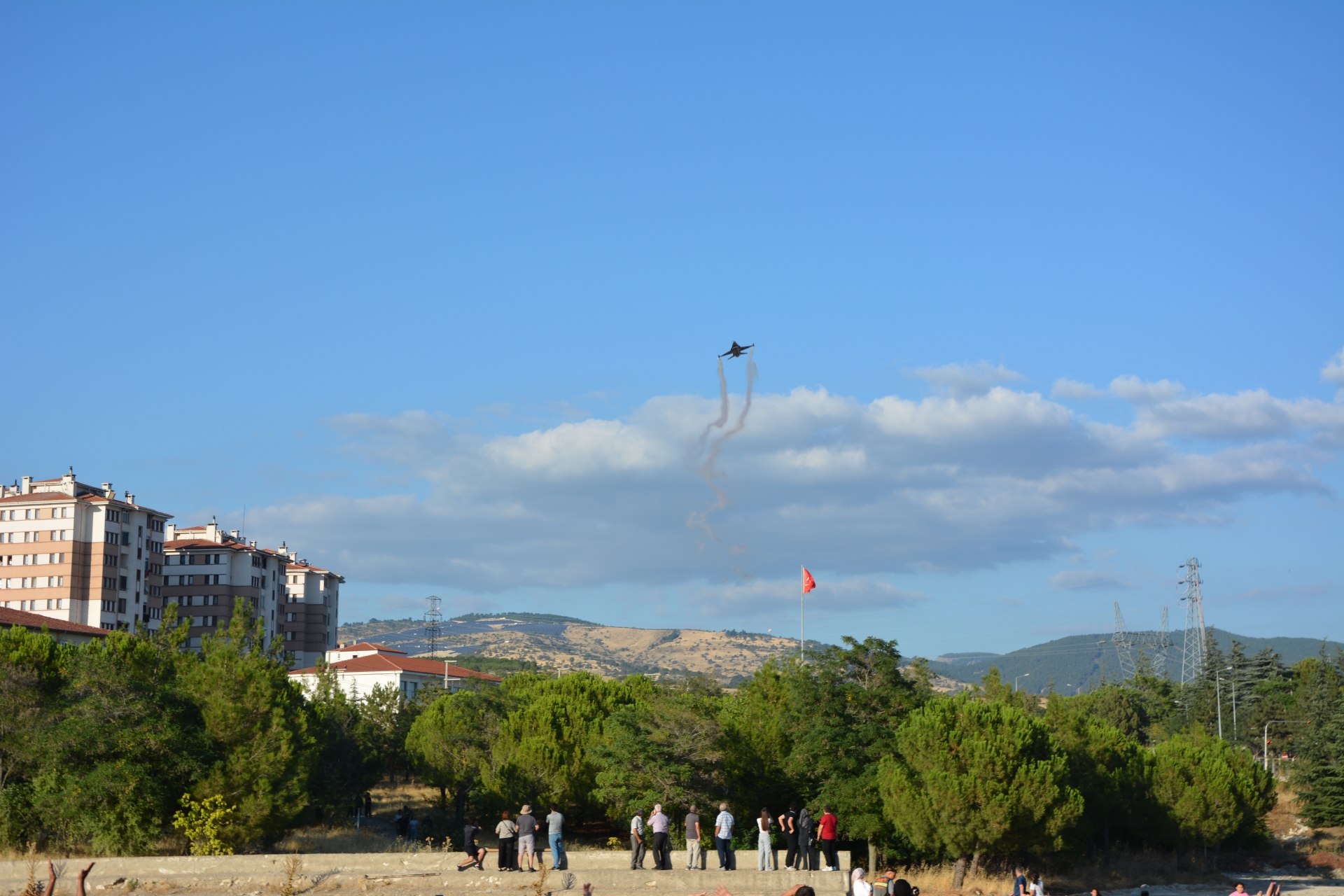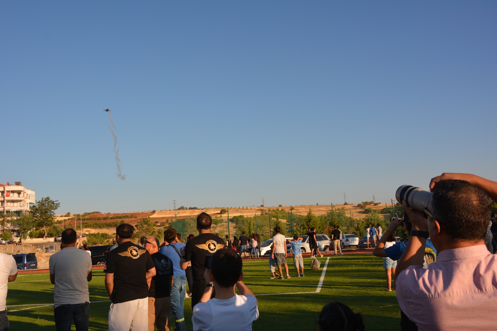 Vatandaşlar prova uçuşunu izlemek için Eğitim Fakültesi suni çim sahaya akın ederken, kimi vatandaşlarda evlerinin balkonlarına, çatılarına ve yüksek tepelere çıktılar.