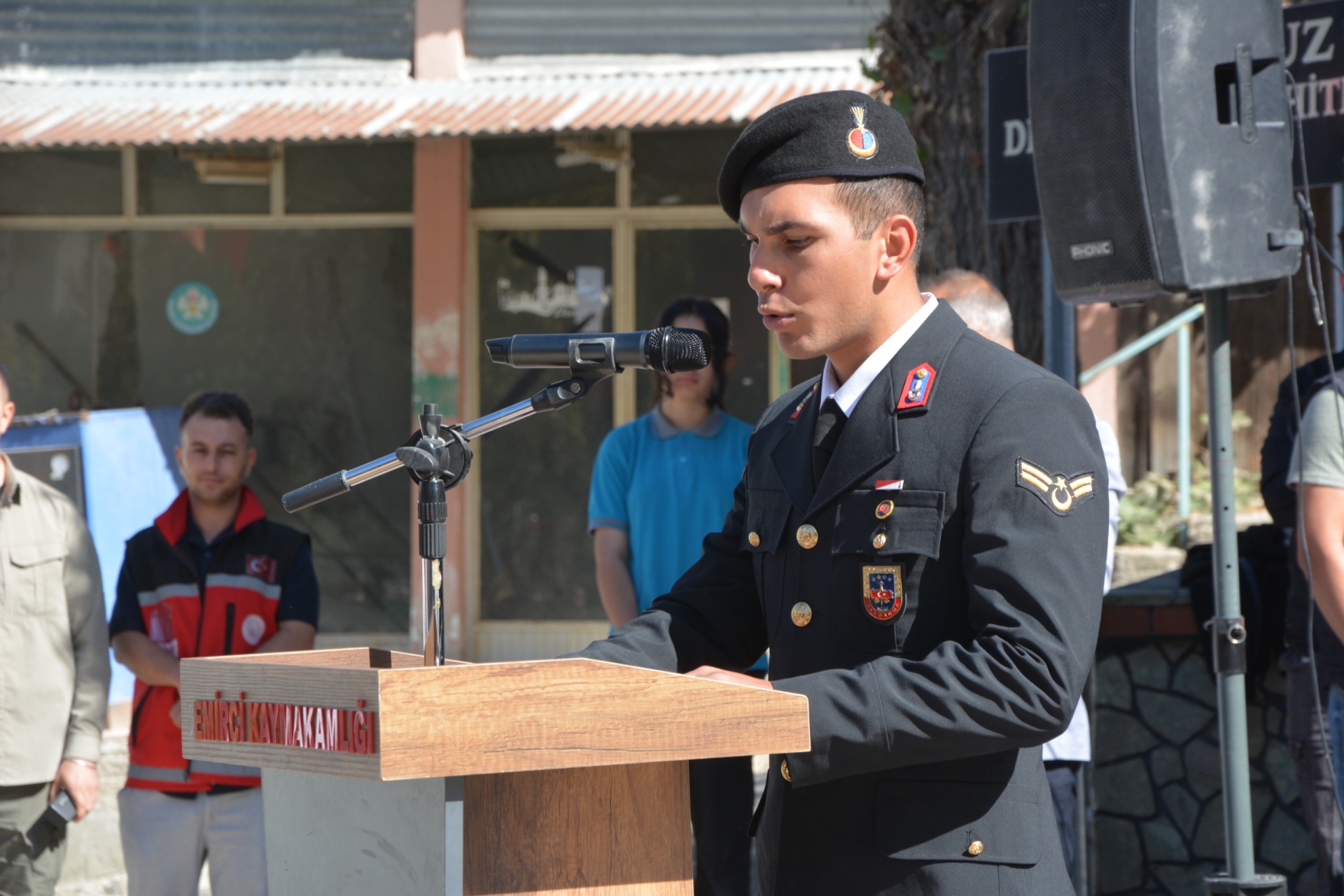 Saygı duruşu ve İstiklal marşının okunmasının ardından Demircili Gazi Hasan Gümüş tarafından günün anlam ve önemini belirten konuşma gerçekleştirdi.