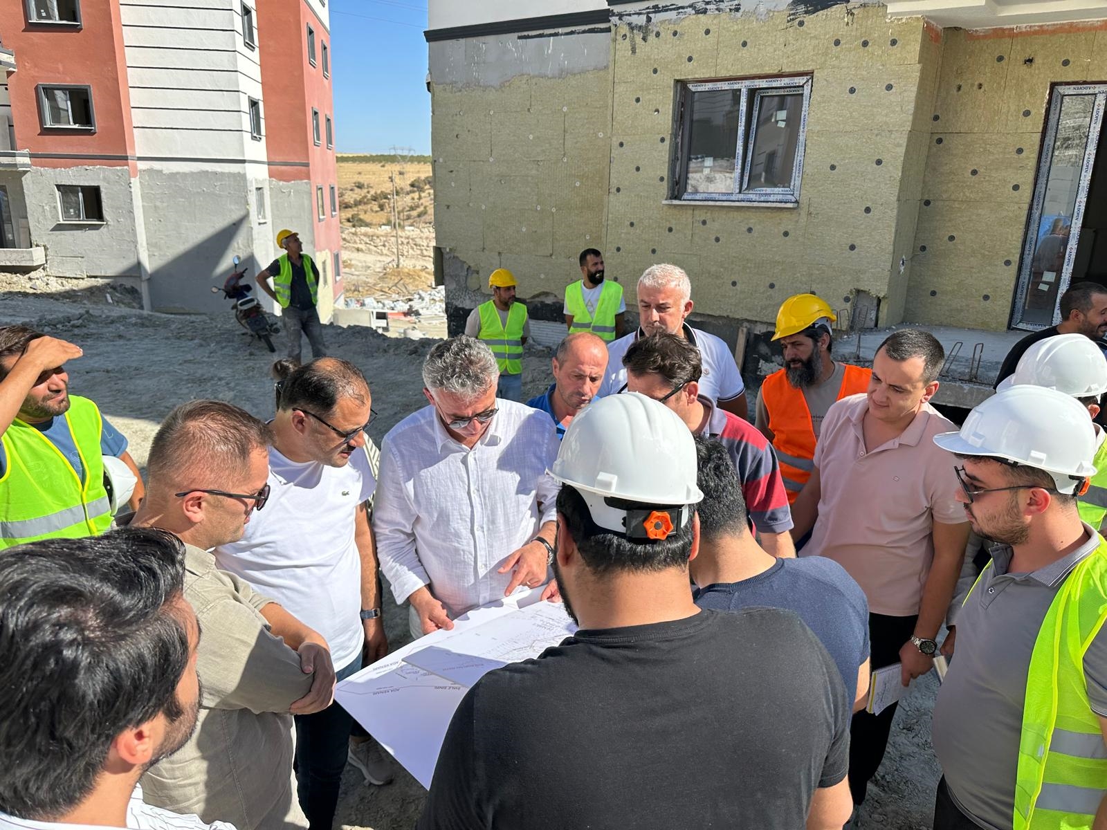 TOKİ 4 nolu Uygulama Dairesi Başkanı Fikret Dikkanoğlu incelemede inşaat çalışmalarında ve bina yapımlarında yapılan çalışmaları denetlerken, dikkat etmeleri gereken hususlar üzerine de uyarılarda bulundu.