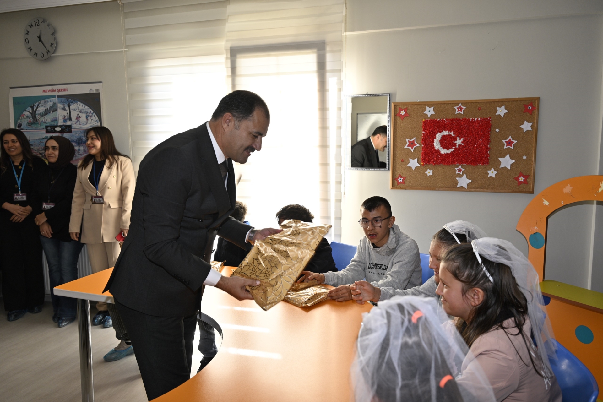 Başkanımız Erkan Kara, sınıflarda eğitim alan öğrencileri tek tek ziyaret ederek günün anısına çeşitli hediyeler takdim etti.