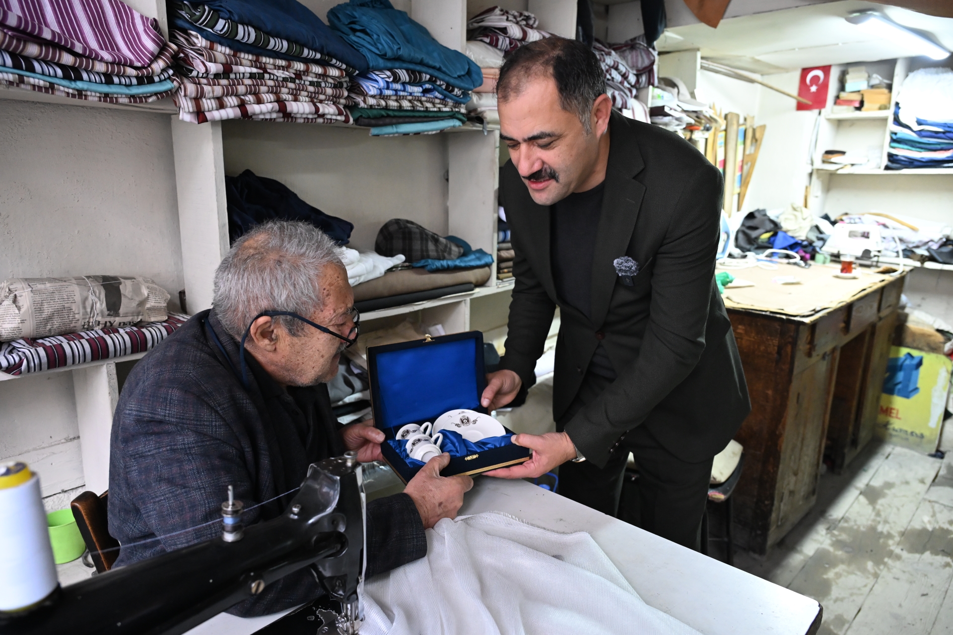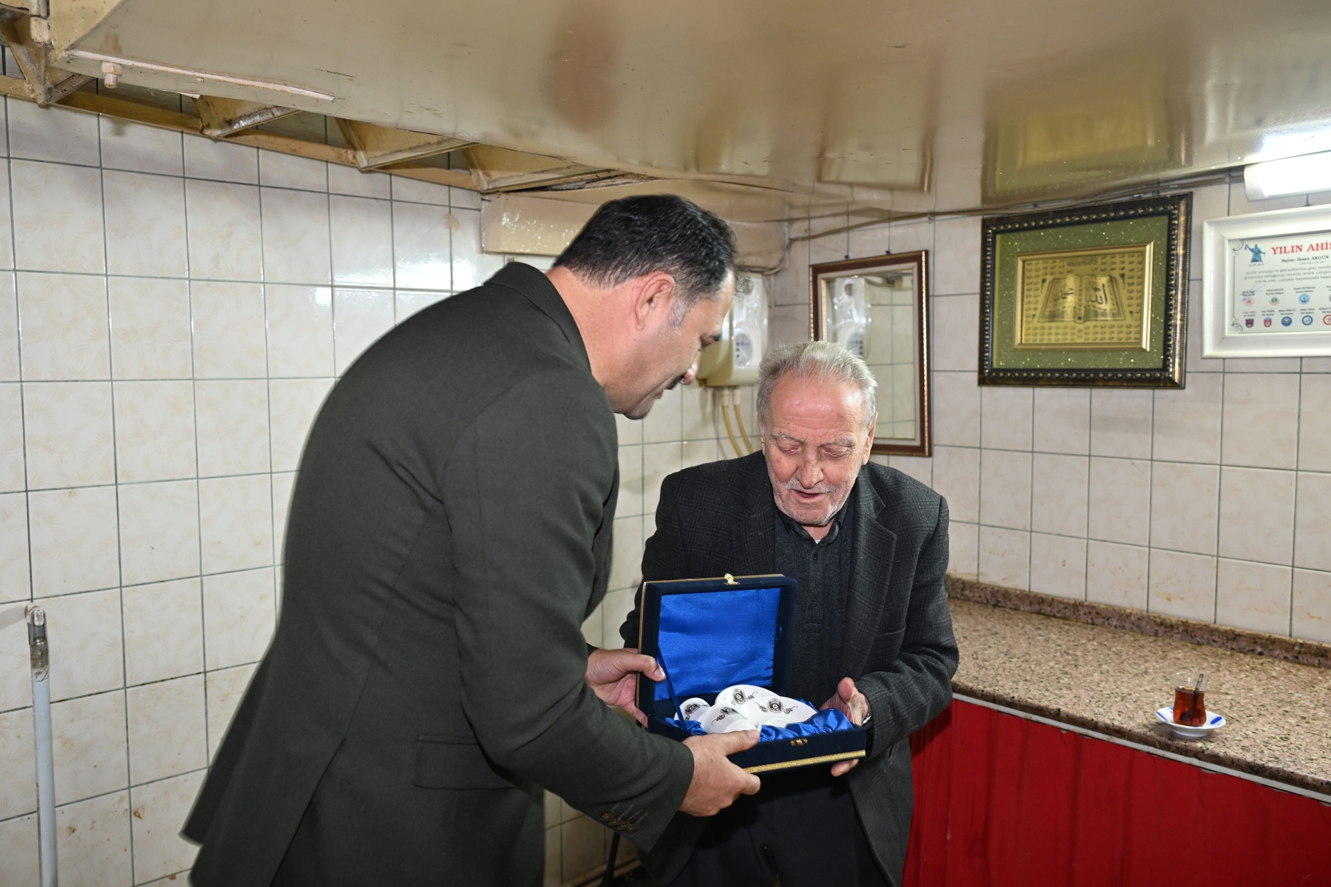Başkanımız Erkan Kara ziyaretlerde usta ve sanatkârlara günün anısına fincan takımı da hediye etti.