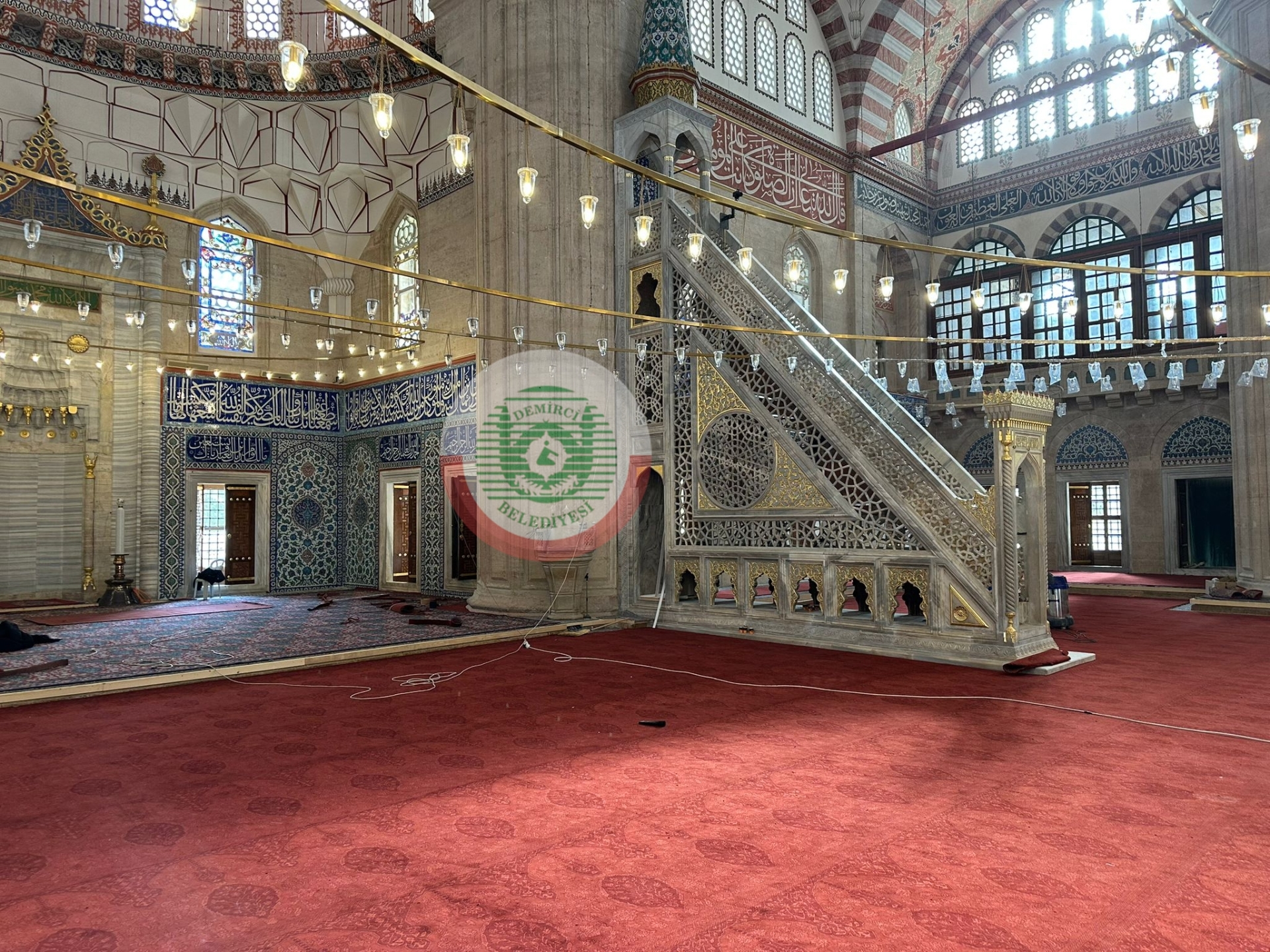 Selimiye Camii’ne serilen Demirci halıları, ilçenin köklü halıcılık kültürünün yaşatılması ve gelecek nesillere aktarılması açısından da büyük önem taşıyor.