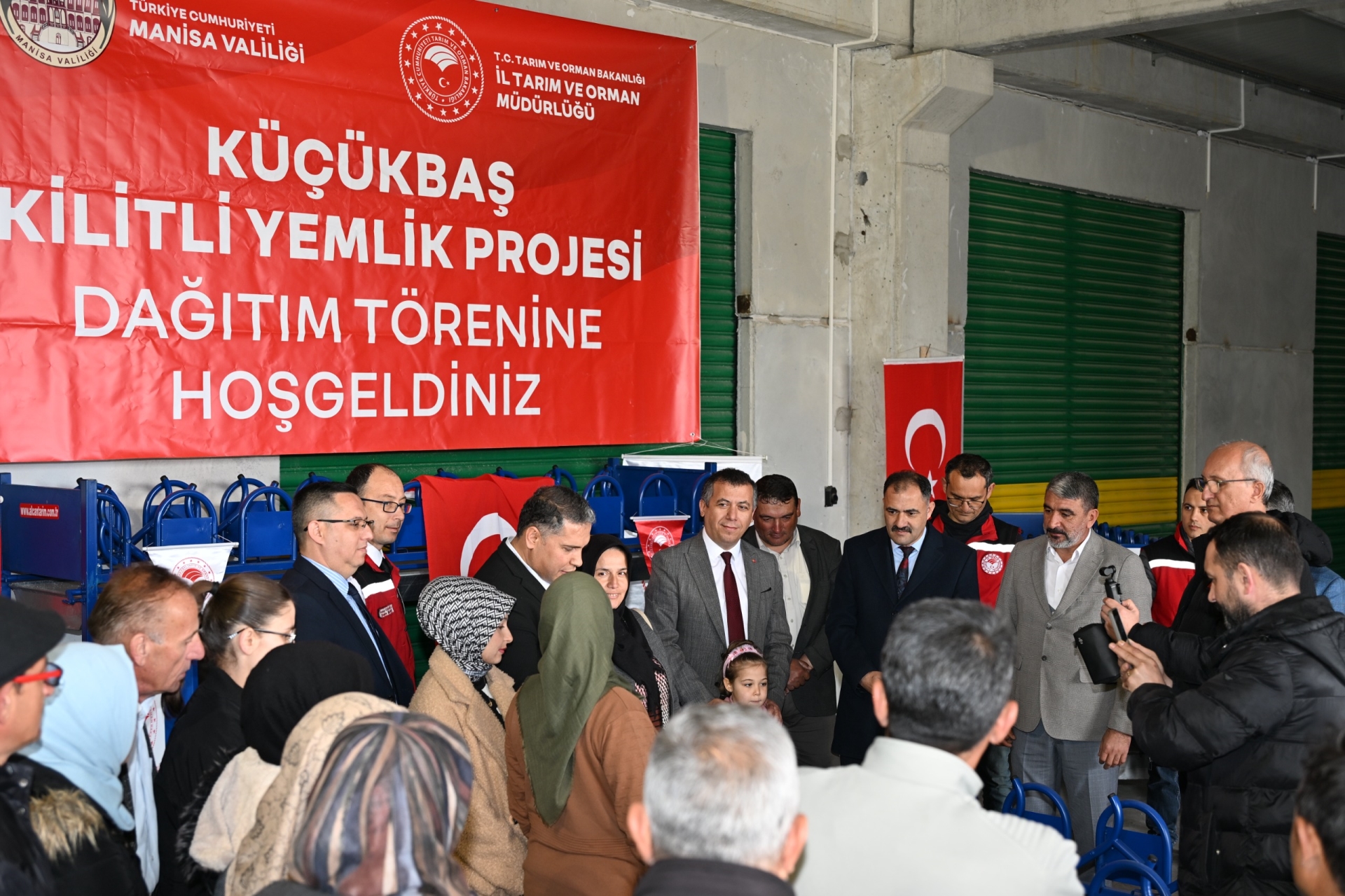 Demirci Tarım Ürünleri Merkezi’nde düzenlenen dağıtım törenine Demirci Kaymakamı Fatih Bayram, Belediye Başkanımız Erkan Kara, İl Tarım ve Orman Müdürü Mehmet Karayılan, İlçe Tarım ve Orman Müdürü Faruk Şenyurt ve hak sahibi üreticiler katıldı.