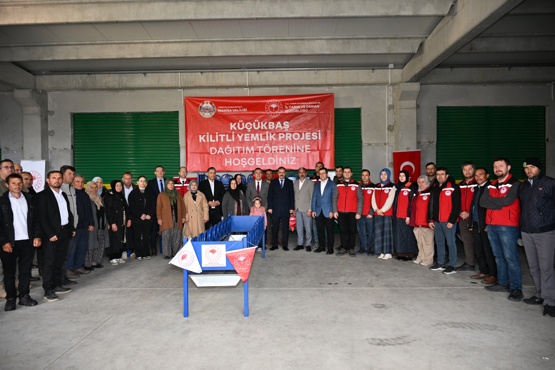 Demirci’de küçükbaş hayvancılığı modernize etmek ve üretimde verimliliği artırmak amacıyla Tarım ve Orman Bakanlığı tarafından başlatılan proje kapsamında, 14 üreticiye %80 hibeli kilitli yemlikleri törenle teslim edildi.
