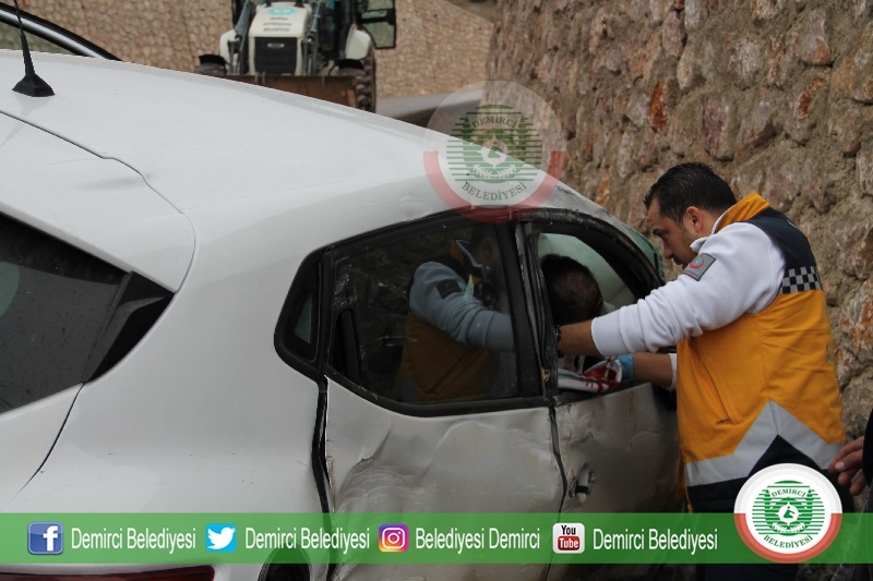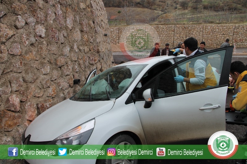 Alınan bilgilere göre Demirci istikametinden 34 RT 8704 plakalı Gökhan Akbaş, yönetimindeki otomobil yağmurunda etkisi ile çat dere mevkiine direksiyon hakimiyetini kaybetmesi sonucu istinat duvarına çarparak duvara çarparak durabildi.