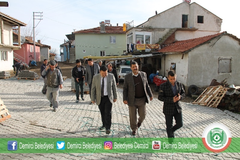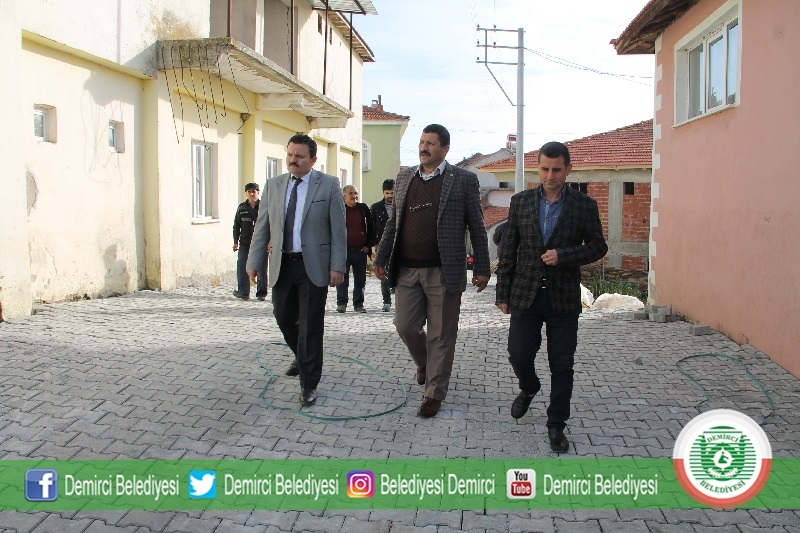 Demirci Kaymakamı Mutlu Akyol ve Belediye Başkanı Selami Selçuk ve Ak Parti İlçe Başkanı Mehmet Acar'da, parke taşı döşemesi yapılan mahalleleri ziyaret ederek, yapılan çalışmaları yerinde inceledi.
