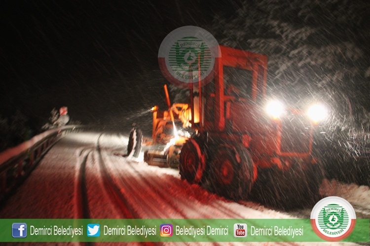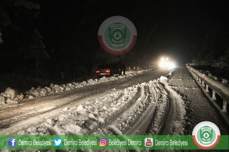 Demirci İlçe merkezinde akşam saatlerinde sağanak yağmur etkisini arttırırken, Bin 470 rakımlı Akçakertik Mevki, Asitepe Mevki ve Türkmen Tepe mevkilerinde kar yağışını etkisini artırdı. Demirci - Simav karayolu Bin 470 rakımlı Akçakertik mevkiinde kar kalınlığı 10 santimetreyi aşarken, Demirci Karayolları ekipleri kar temizleme ve buzlanmaya karşı tuzlama çalışmasına başladı.
