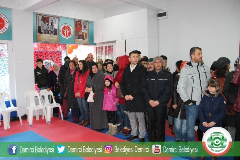 Demirci Belediyespor bünyesinde 2000 yılında hizmete açılan Taekwondo kulübünün spor salonu Demirci Belediyesince yeniden düzenlendi. Spor salonun açılış törenine Demirci Belediye Başkanı Selami Selçuk, Ak Parti Demirci İlçe Başkanı Mehmet Acar, Manisa Gençlik Hizmetleri Spor İl Müdürü Yunus Öztürk, Türkiye Taekwondo Federasyonu Yönetim Kurulu Üyesi ve Manisa İl Temsilcisi Gökay Budak,Yunusemre Belediye Başkan Yardımcısı İdris Avşar, Demirci Gençlik Hizmetleri ve Spor İlçe Müdürü Bilal Yılmaz, Demirci Belediyespor Kulüp Başkanı Mehmet Coşar sporcular ve sporcu aileleri katıldı.