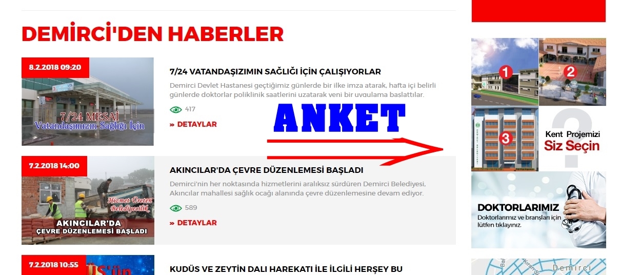 Vatandaşlarımız anasayfanın sağ tarafındaki nöbetçi eczane bölümün altındaki bölüme tıklayarak ankette bulunan projelerden birini seçerek oylarını kullanabilirler.