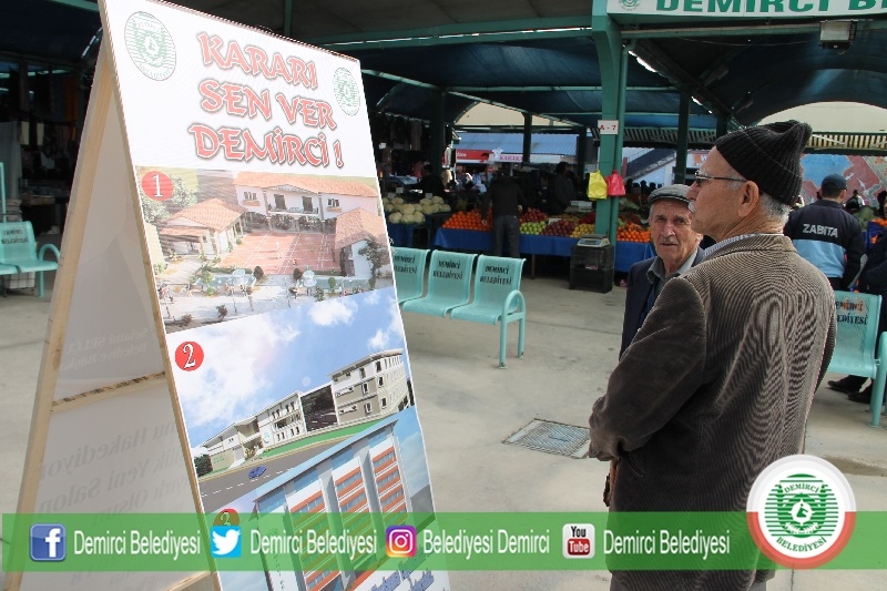 Demirci Belediyesi ilçeye yapacağı Kent Merkezi Projesi için sandık kurarak vatandaşın onayını alıyor.