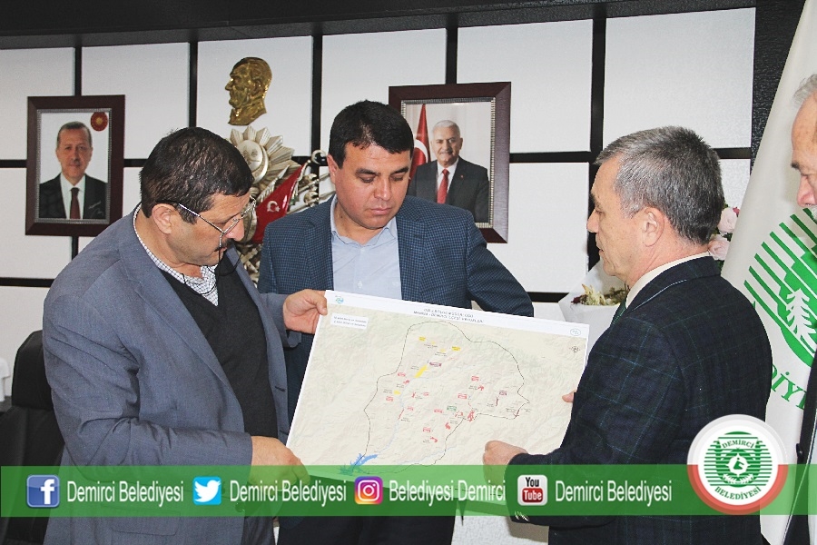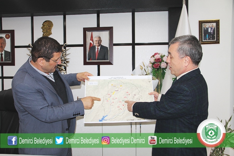Orman ve Su İşleri Bakanlığı Devlet Su İşleri Bölge Müdürü Ali Fuat Eker, Demirci'de devam eden gölet ve baraj yatırımlarını incelemek üzere ilçeyi ziyaret ederken, Belediye Başkanı Selami Selçuk'u da makamında ziyaret etti.