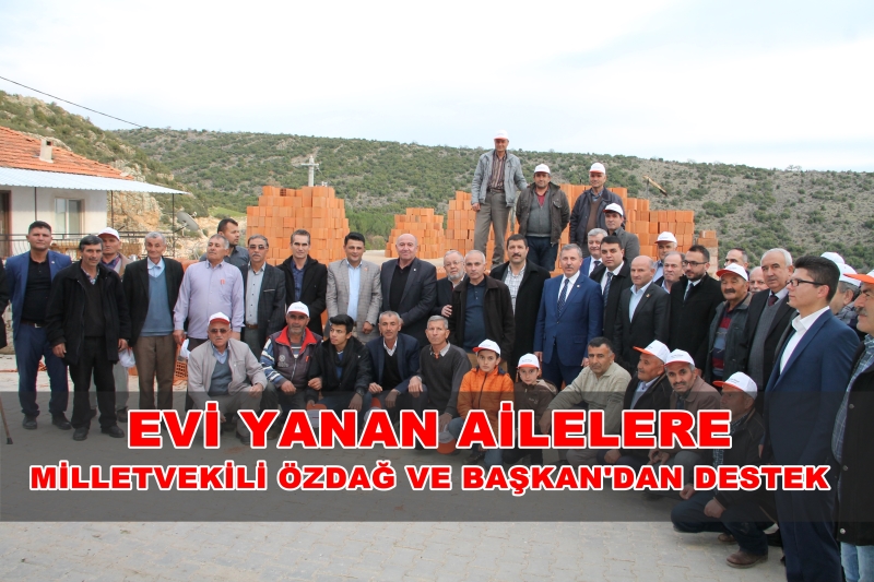 Evi yanan aileye Manisa Milletvekili Doç. Dr. Selçuk Özdağ tarafından, 5 Bin 500 tuğla verilirken, Belediye Başkanı Selami Selçuk tarafından da kum, çimonta ve inşaat malzemesi verildi.