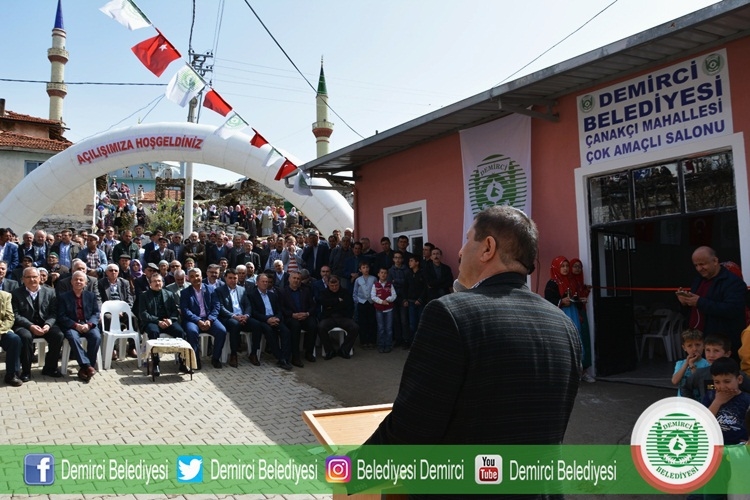Demirci Belediyesince İlçemiz Çanakçı mahallesine yapılan 225 metrekare büyüklüğünde yemekhane ve lavaboların yer aldığı çok amaçlı salon inşaatının tamamlanması ile birlikte yoğun bir katılımla hizmete açıldı.