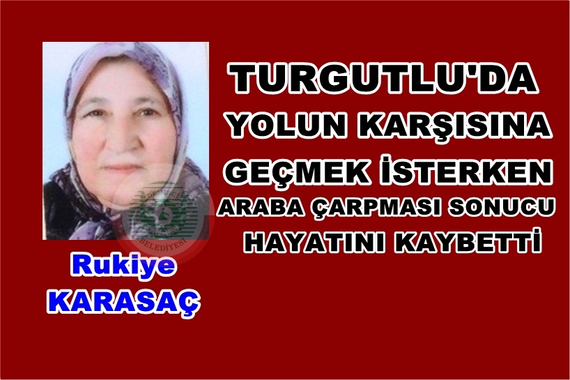Edinilen bilgilere göre Dursun Özcan'ın (39) kullandığı 35 NGE 72 plakalı otomobil, Turgutlu Yeni Garaj önünde yolun karşısına geçmeye çalışan Rukiye Karasaç'a (74) çarptı.