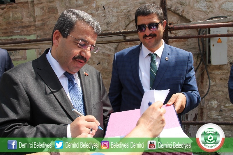Hacı Hasan Cami Cuma namazının ardından düzenlenen törene Demirci Kaymakamı Mutlu Akyol, Belediye Başkanı Selami Selçuk, İzmir Vakıflar Bölge Müdürü Fethi Koç, Ak Parti Demirci İlçe Başkanı Mehmet Acar, daire amirleri ve çok sayıda vatandaş katıldı.